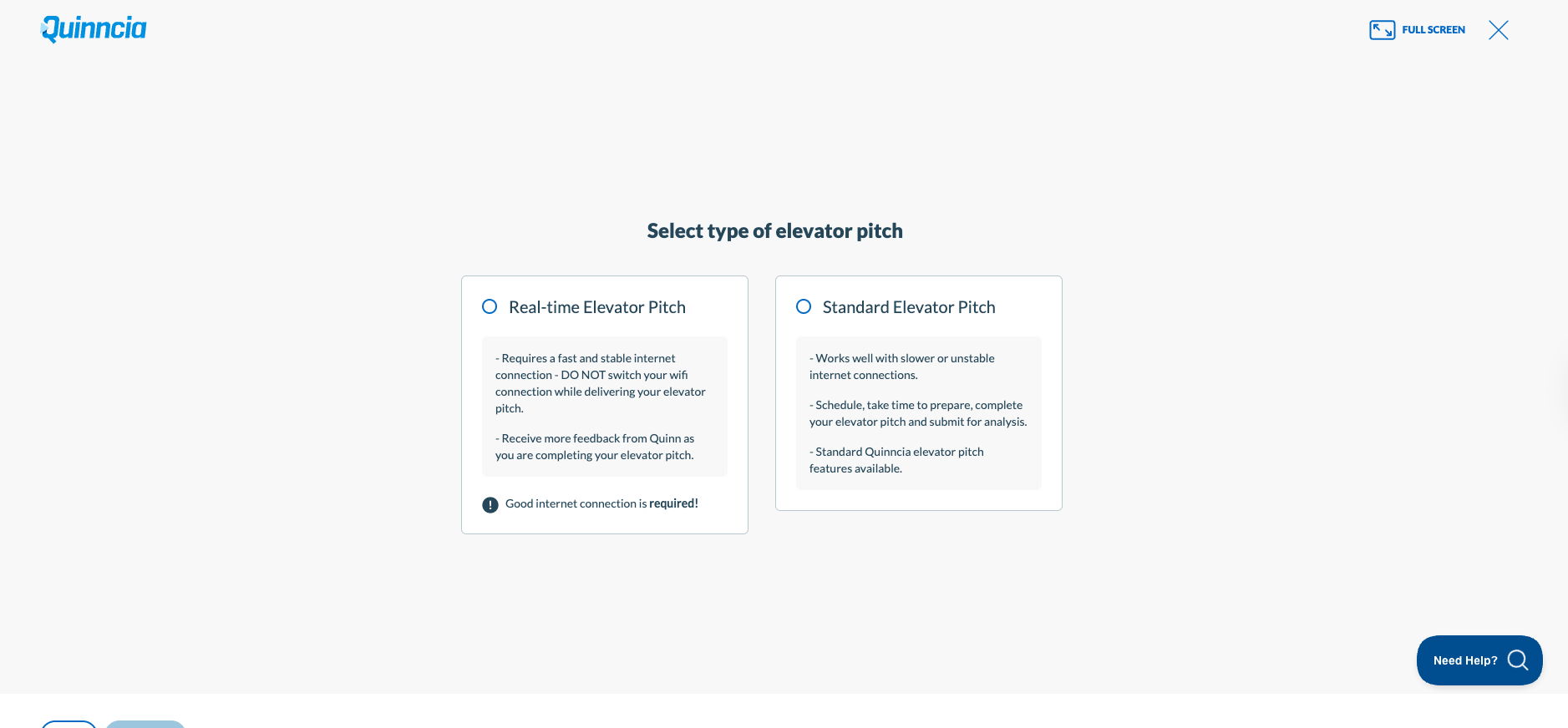 - In this page, select the type of elevator pitch you would like to use.